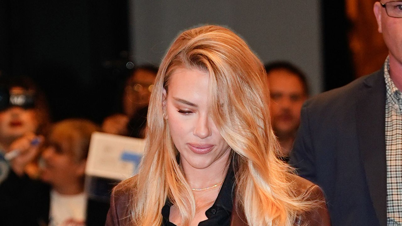 Scarlett’s outfit was an impressive blend of professionalism and chic style. She wore a brown leather blazer teamed with flared brown trousers, giving her a polished business-ready vibe. Underneath, a black button-up blouse added a touch of elegance, complemented by pointed-toe pumps and a stylish intrecciato leather clutch. However, what truly elevated her entire look was her hair, styled in a way that added flair and charisma to an otherwise sleek ensemble.